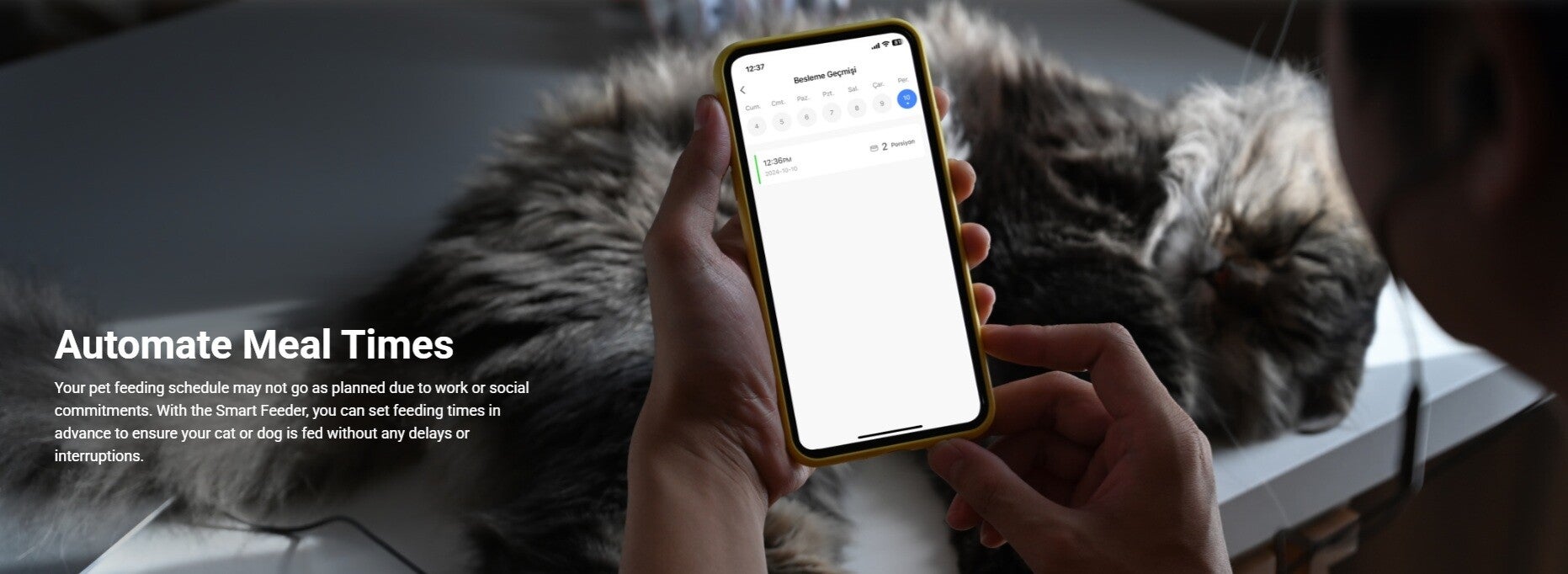 No need to worry about your pet's feeding needs while you're asleep, at work or out of town. Thanks to Xenon Smart's Wi-Fi-connected, app-supported Smart Feeder, you can feed your pet regularly even when you're not there.
