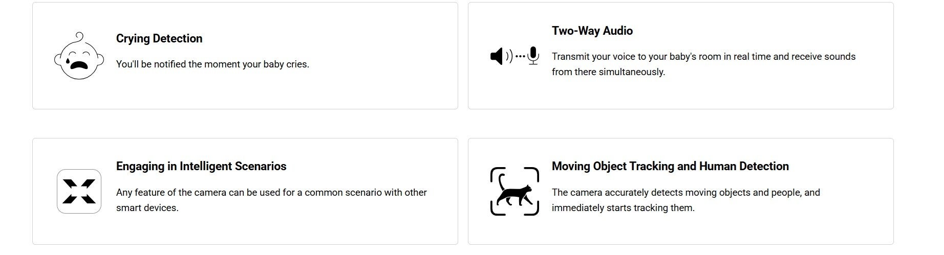 It allows parents to have peace of mind when they are away from home due to work or any other reason. It reduces the burden of caregiving and provides parents with much more information about the baby's condition beyond just seeing it.It works seamlessly with phones, enabling real-time monitoring. It offers complete protection against unauthorized access thanks to its encrypted connection.