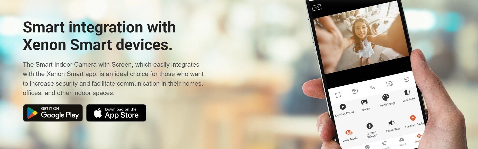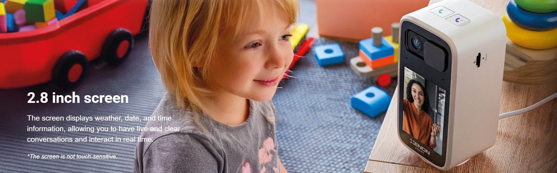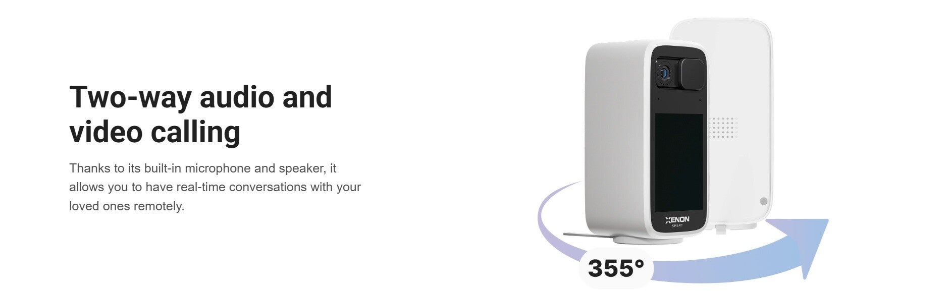 No matter how far away you are, you can monitor and control the Smart Indoor Camera with Screen, receive real-time instant notifications, and share with family members thanks to the free Xenon Smart app with multi-language interface.